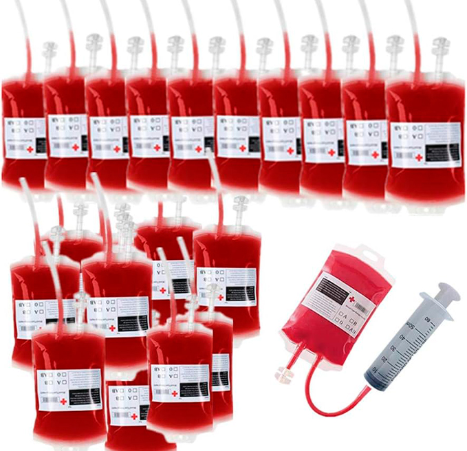 Set de 20 Bolsas de Sangre para Bebidas de Halloween, hechas de PVC de grado alimenticio, reutilizables y fáciles de llenar, perfectas para fiestas temáticas y eventos espeluznantes.