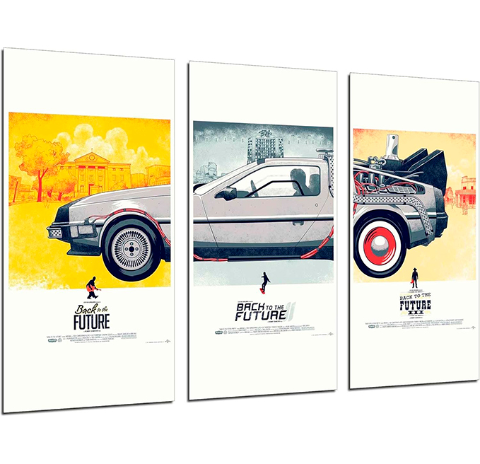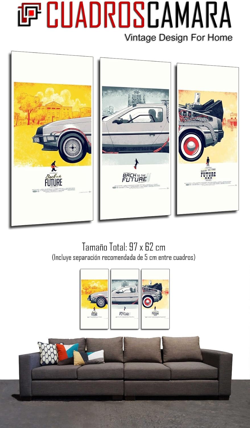Cuadro Regreso al Futuro, composición fotográfica de 3 partes, impresa sobre papel de 140 gr. Tamaño XXL: 97 x 62 cm, ideal para decorar cualquier pared de tu hogar.