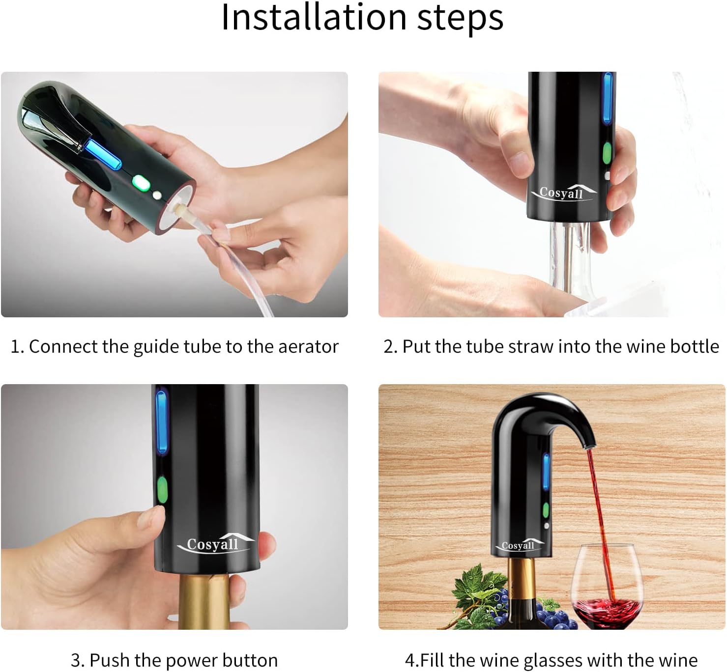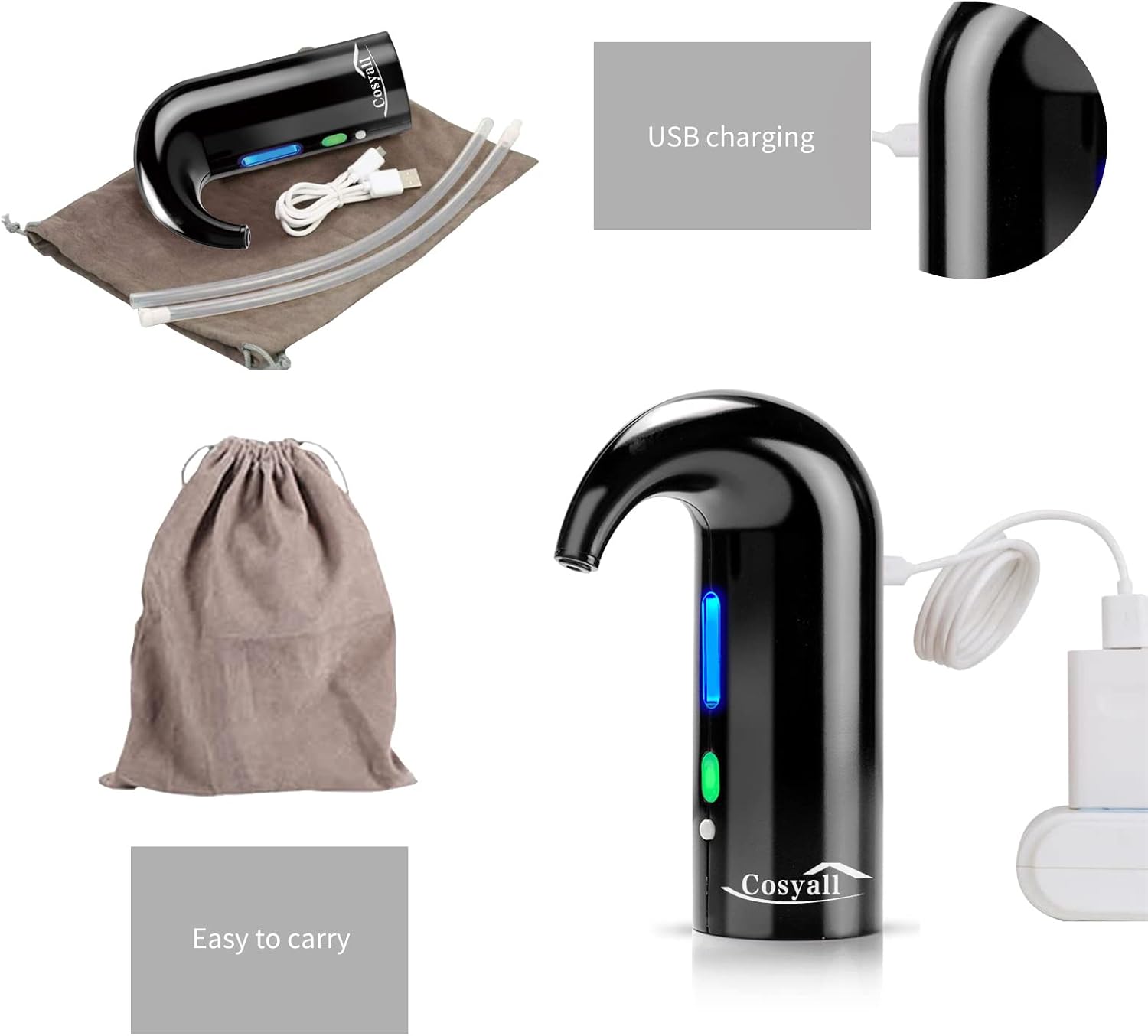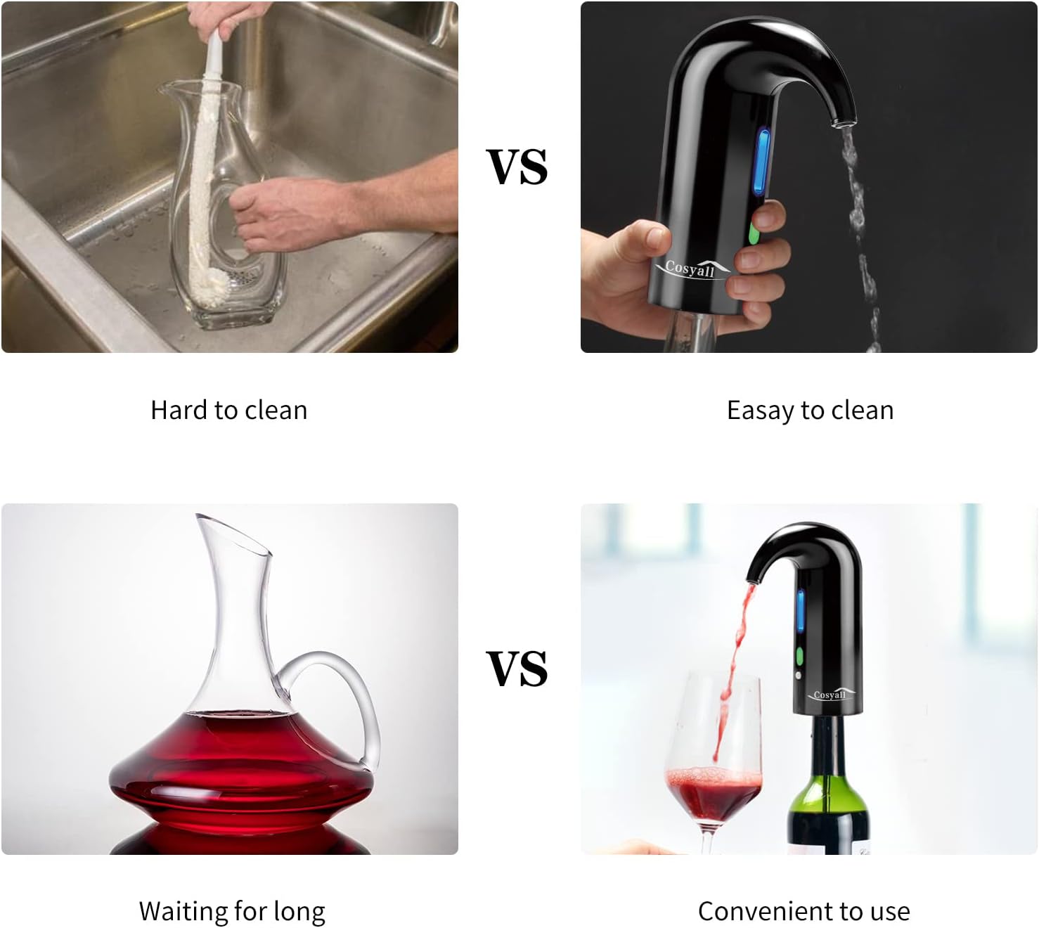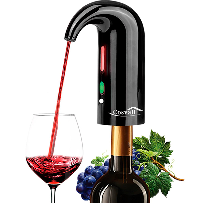 El decantador de vino eléctrico recargable USB de Cosyall es la solución ideal para los amantes del vino que desean una experiencia de vertido perfecta y sin esfuerzo. Este dispensador automático inyecta aire en la botella a una velocidad uniforme, asegurando un flujo suave y continuo del vino sin salpicaduras ni derrames. Con este innovador dispositivo, podrás despedirte de los decantadores tradicionales y disfrutar de un vertido profesional en cada copa.