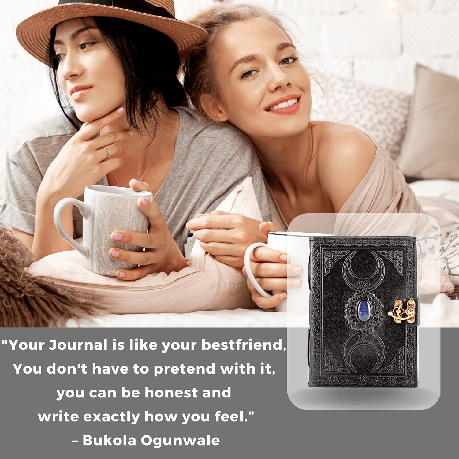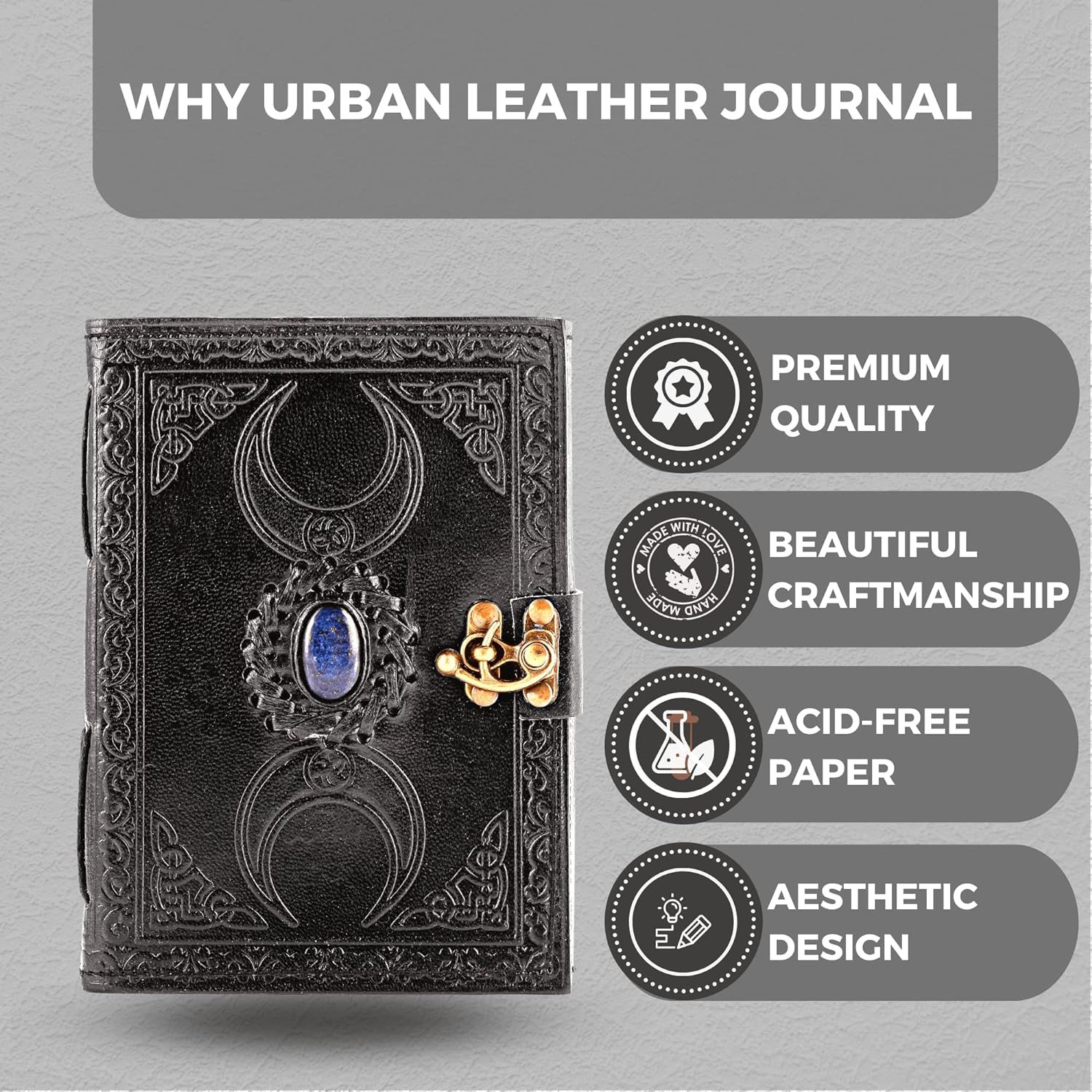 Diario de cuero Wicca con cierre antiguo