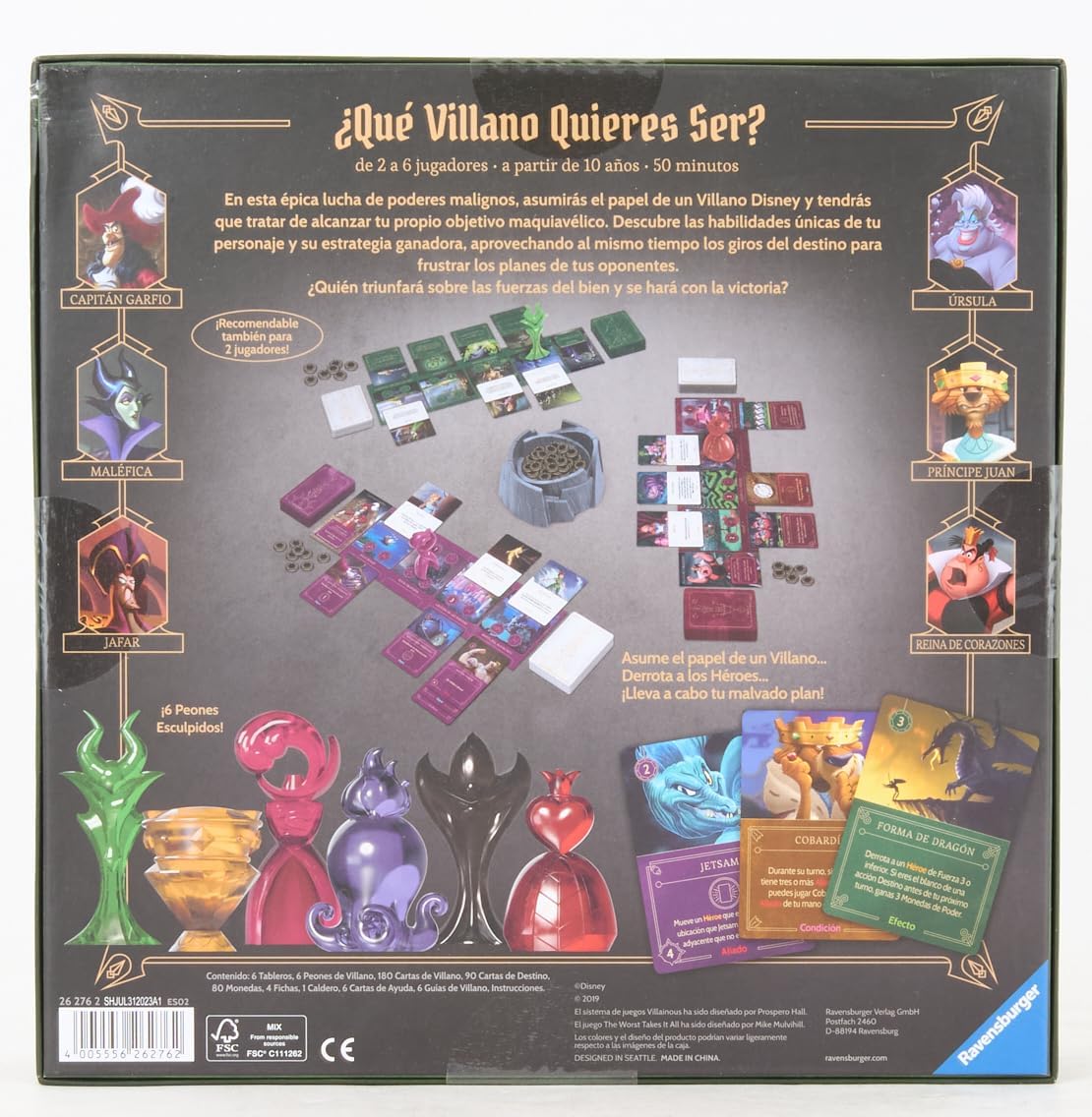 Juego de mesa de estrategia para 2-6 jugadores. Asume el papel de un villano Disney y alcanza tus objetivos maquiavélicos. A partir de 10 años. Tamaño: 28 x 28 x 10 cm.