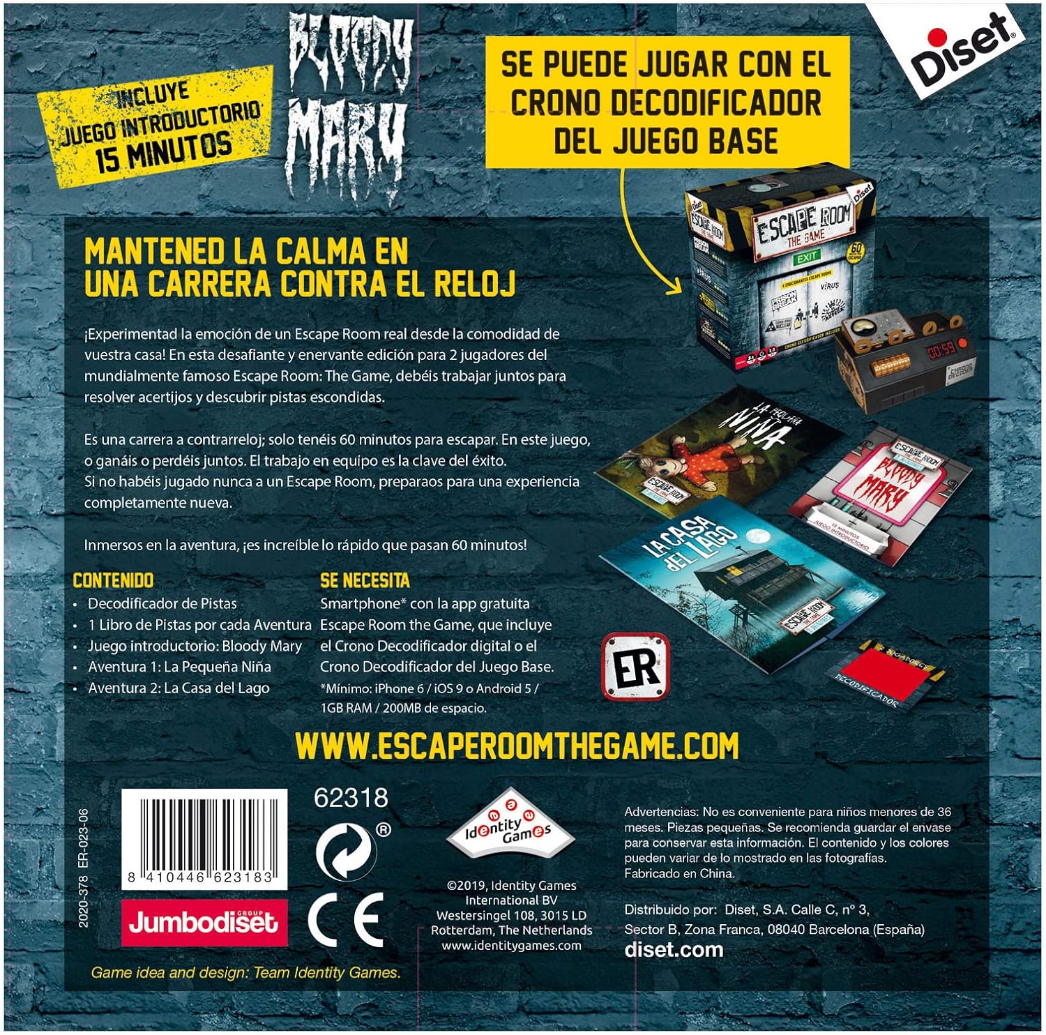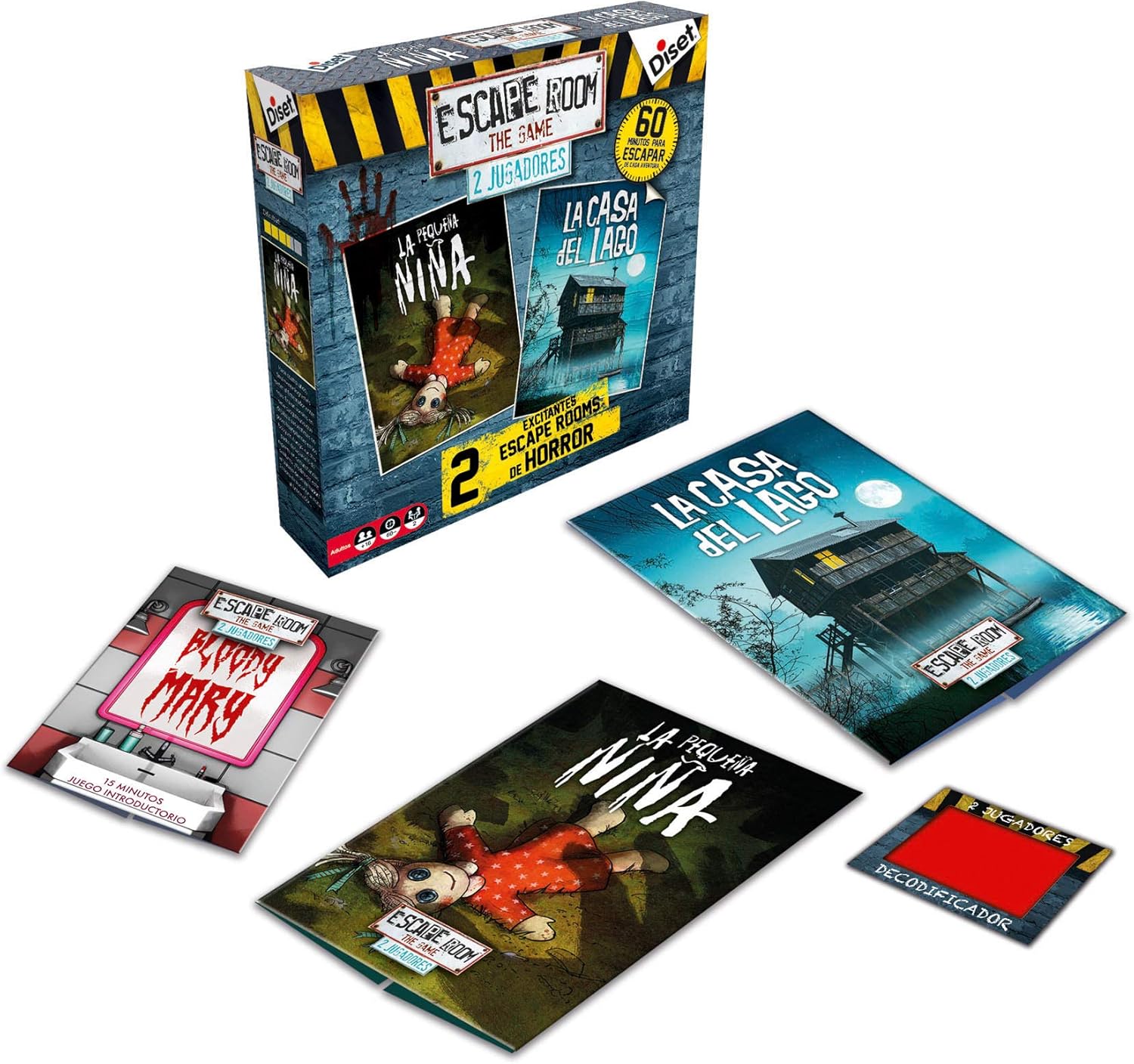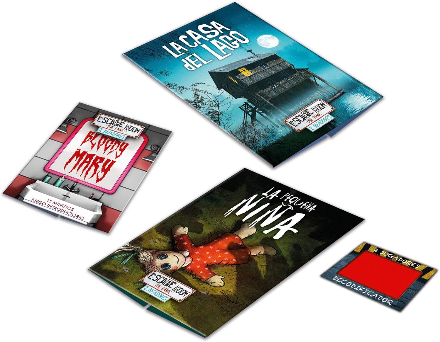¡Experimenta la emoción de un Escape Room en la comodidad de tu hogar con este juego de mesa para 2 jugadores! En este juego adulto, tendrás que resolver enigmas, jeroglíficos, adivinanzas, sudokus y crucigramas para escapar de dos aventuras emocionantes ambientadas en temática de terror: «La casa del lago» y «La pequeña niña». Cada aventura dura 60 minutos y viene con todos los materiales necesarios para resolver las pistas. Juega con un amigo o familiar y desafía tus habilidades de resolución de problemas y trabajo en equipo.
