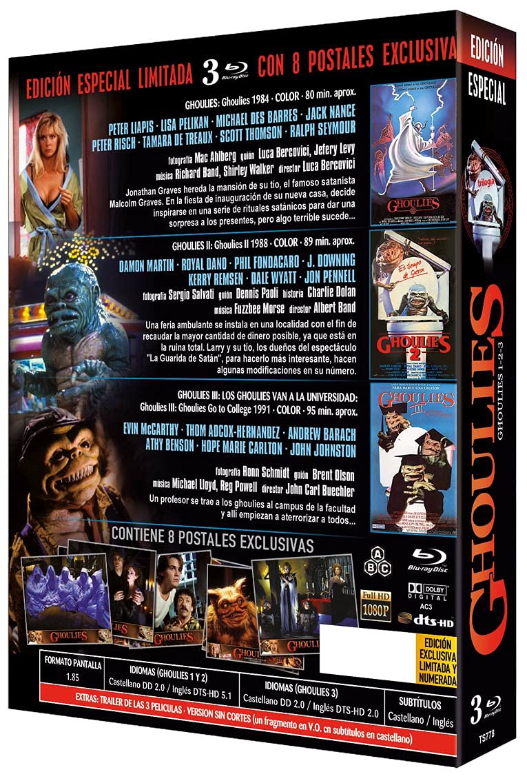 Una trilogía de terror clásica: la Edición Especial Limitada de Ghoulies 1-2-3 te ofrece la oportunidad de disfrutar de tres películas de terror clásicas en un solo paquete. La trilogía sigue las aventuras de Jonathan Graves, un joven que hereda la mansión de su tío satanista y decide realizar un ritual para conjurar a una horda de pequeños demonios llamados Ghoulies.