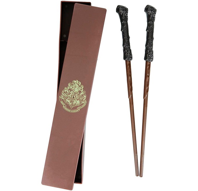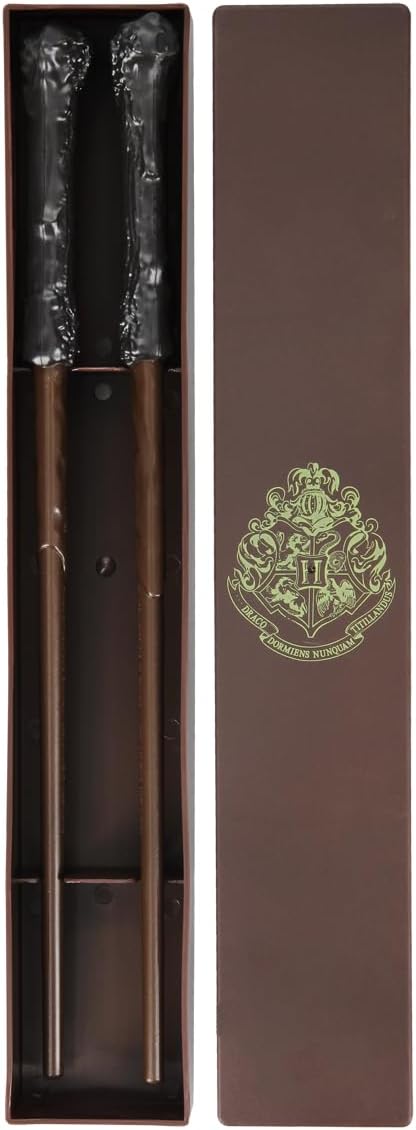 Haz que cada comida sea una experiencia mágica con los Palillos Varita de Harry Potter. Inspirados en las icónicas varitas de Hogwarts, este set incluye dos palillos que transformarán tu momento gastronómico en algo especial. Presentados en un elegante estuche de almacenamiento, estos palillos no solo son prácticos sino también un tesoro para cualquier fan de Harry Potter.