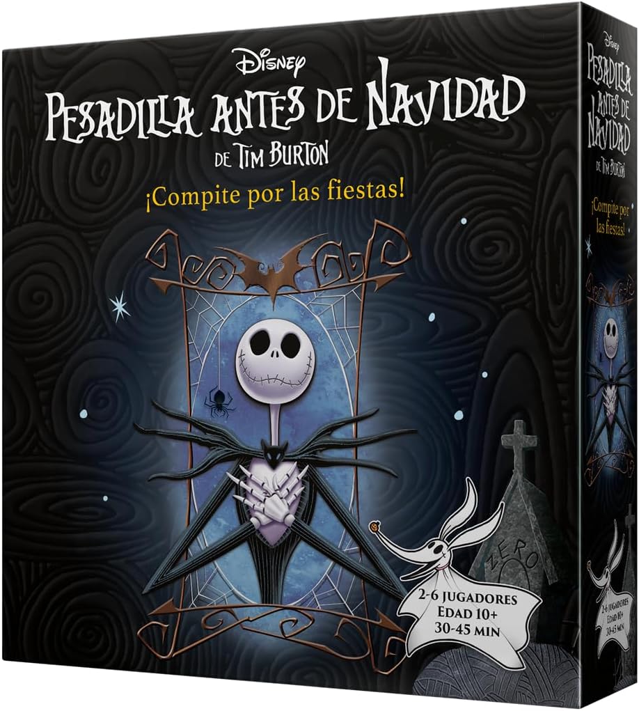 ¡Disfruta de un juego de cartas emocionante y estratégico con Pesadilla antes de Navidad! En este juego para adultos y jóvenes, debes encarnar a uno de tus personajes favoritos y competir por las fiestas. Cada personaje tiene un mazo de cartas exclusivo y acorde con su carácter, por lo que debes jugar con cuidado para superar a tus rivales. El objetivo es conseguir todas las fichas de Fiesta que puedas y ganar la partida. Juega con amigos y familiares de 2 a 6 jugadores y disfruta de una experiencia divertida y emocionante.